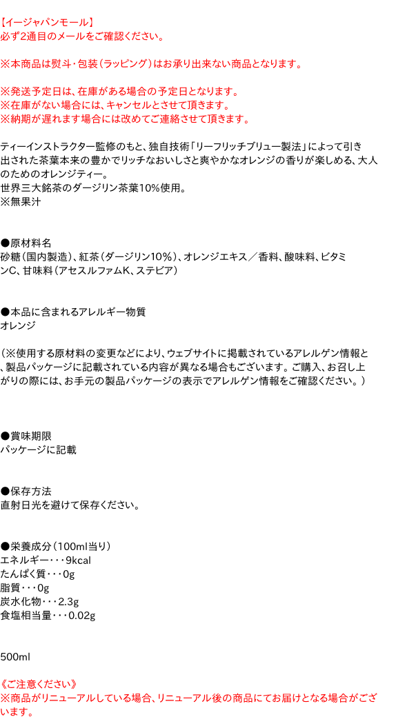 [関連キーワード:飲料 ペット飲料 紅茶 こうちゃ 午後ティ ダージリン おれんじてぃー]まとめ買いはコチラ(激安ケース) >>【イージャパンショッピングモール】内のみのお買い物は、送料一律でどれだけ買っても同梱する事が出来ます。